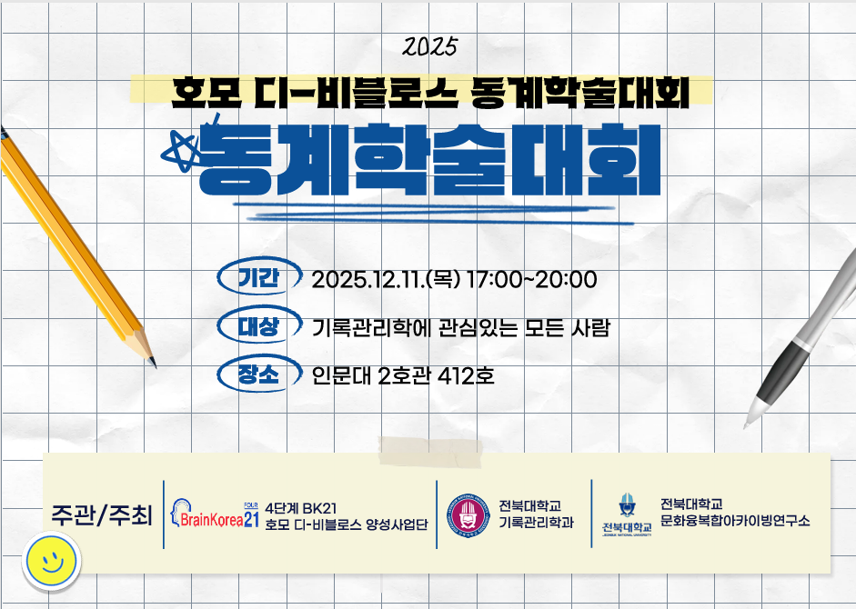 ◌ 주최/주관 : 4단계 BK21 호모 디-비블로스 양성사업단, 전북대학교 인문대학 기록관리학과, 전북대학교 문화융복합아카이빙연구소