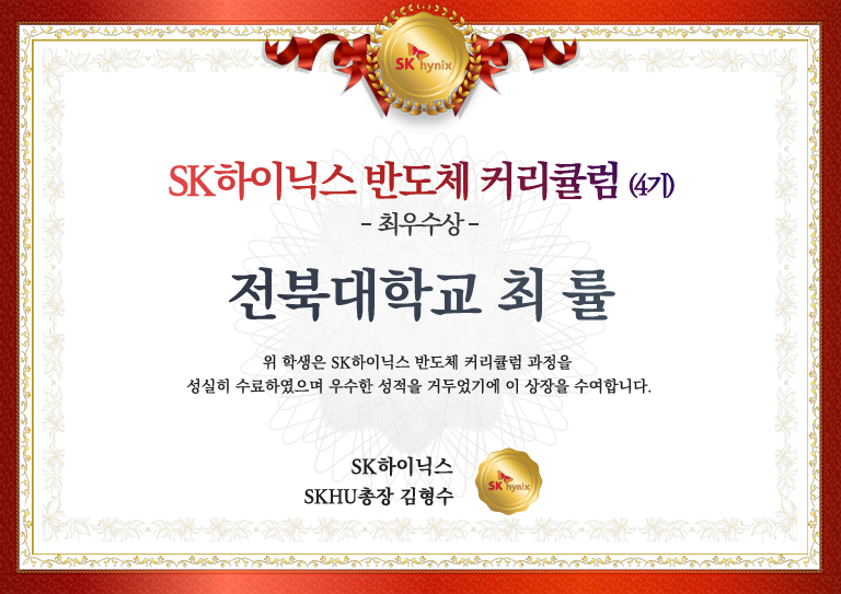 최률 학생, SK하이닉스 반도체 커리큘럼(4기) 최우수상 수상!