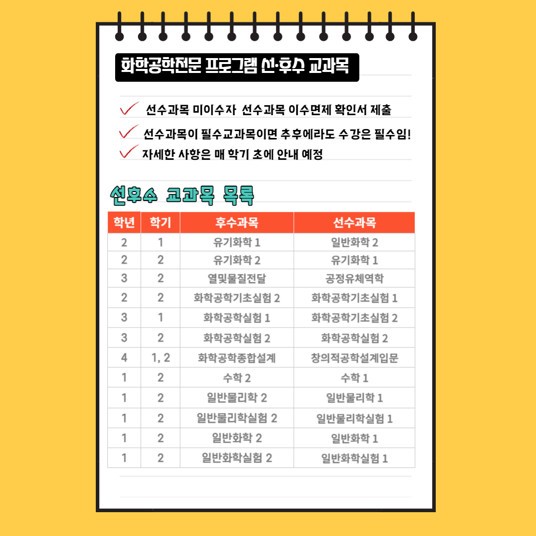 [공학인증]화학공학전문 프로그램 선·후수과목 이수체계도 안내
