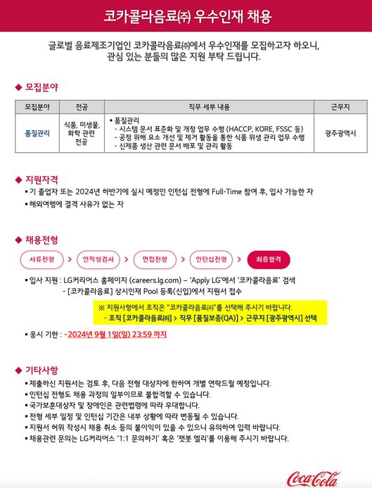 2024년 코카콜라음료(주) 채용 안내문_대학교 공유 (※품질관리).pdf