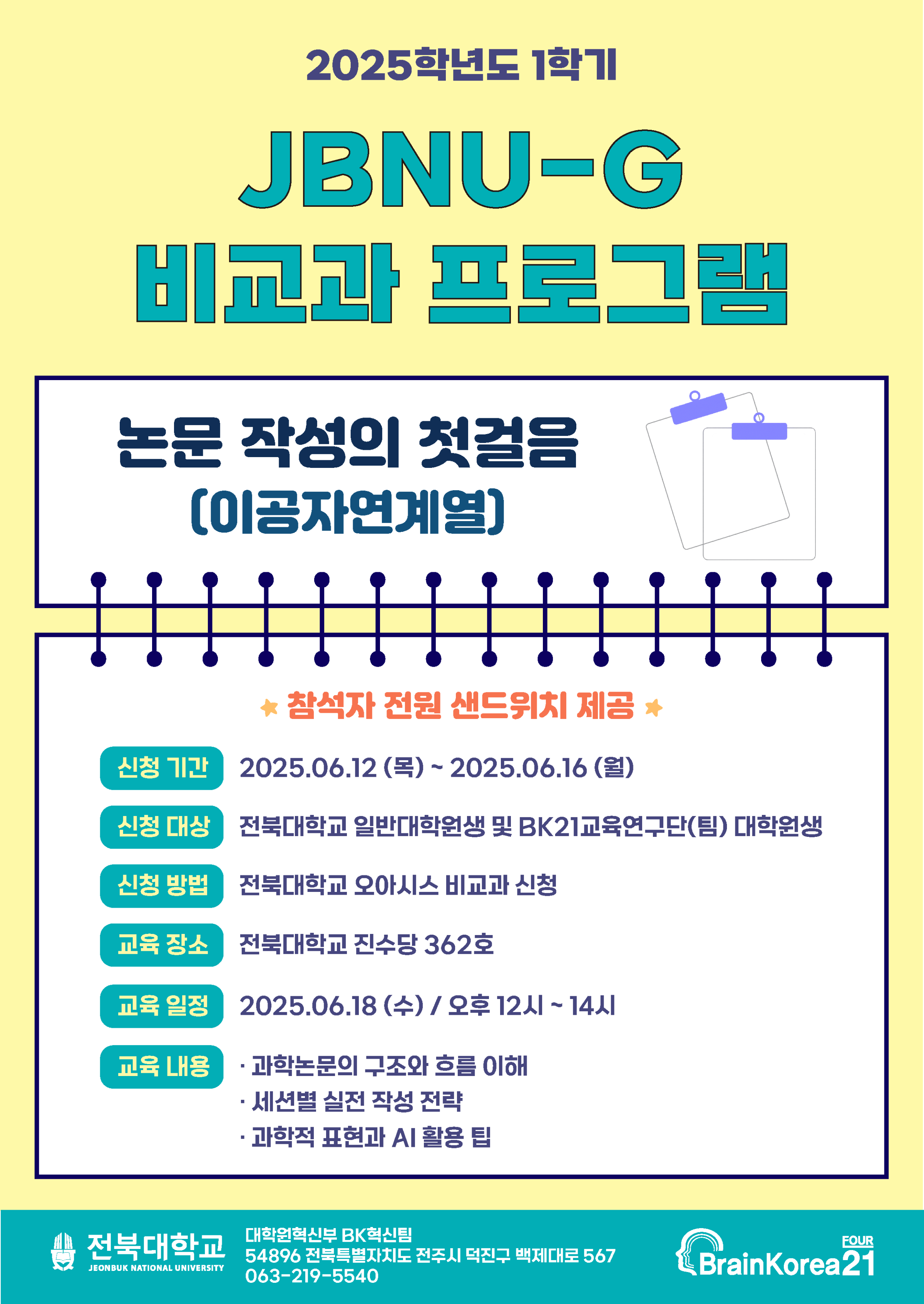 2025학년도 1학기 JBNU-G 논문작성의 첫걸음(이공자연계열) 교육