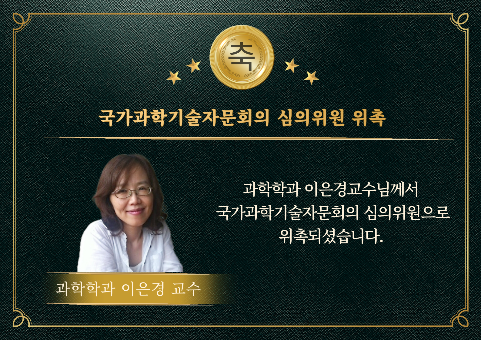전북대 과학학과 이은경교수가 국가과학기술자문회의 심의위원으로 위촉됐다.