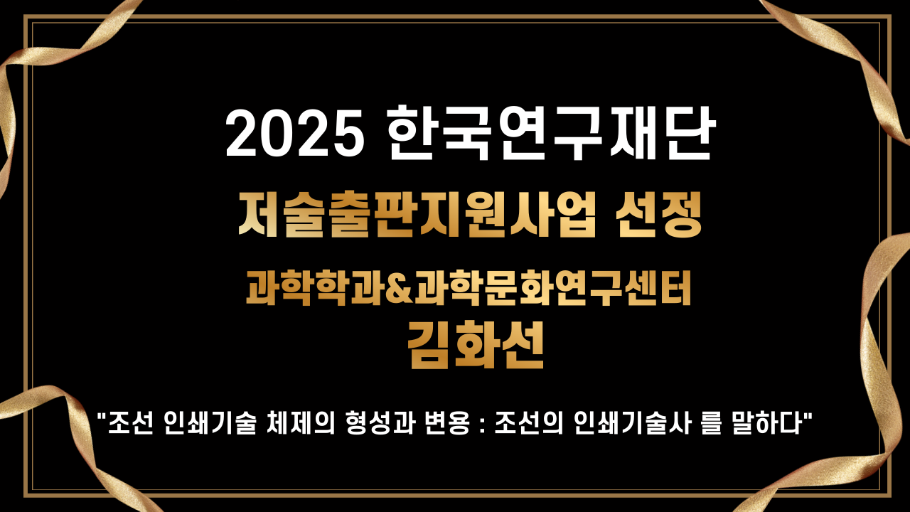 과학학과 98학번 김화선 동문이 2025 한국연구재단 저술출판지원사업에 최종 선정되었습니다.