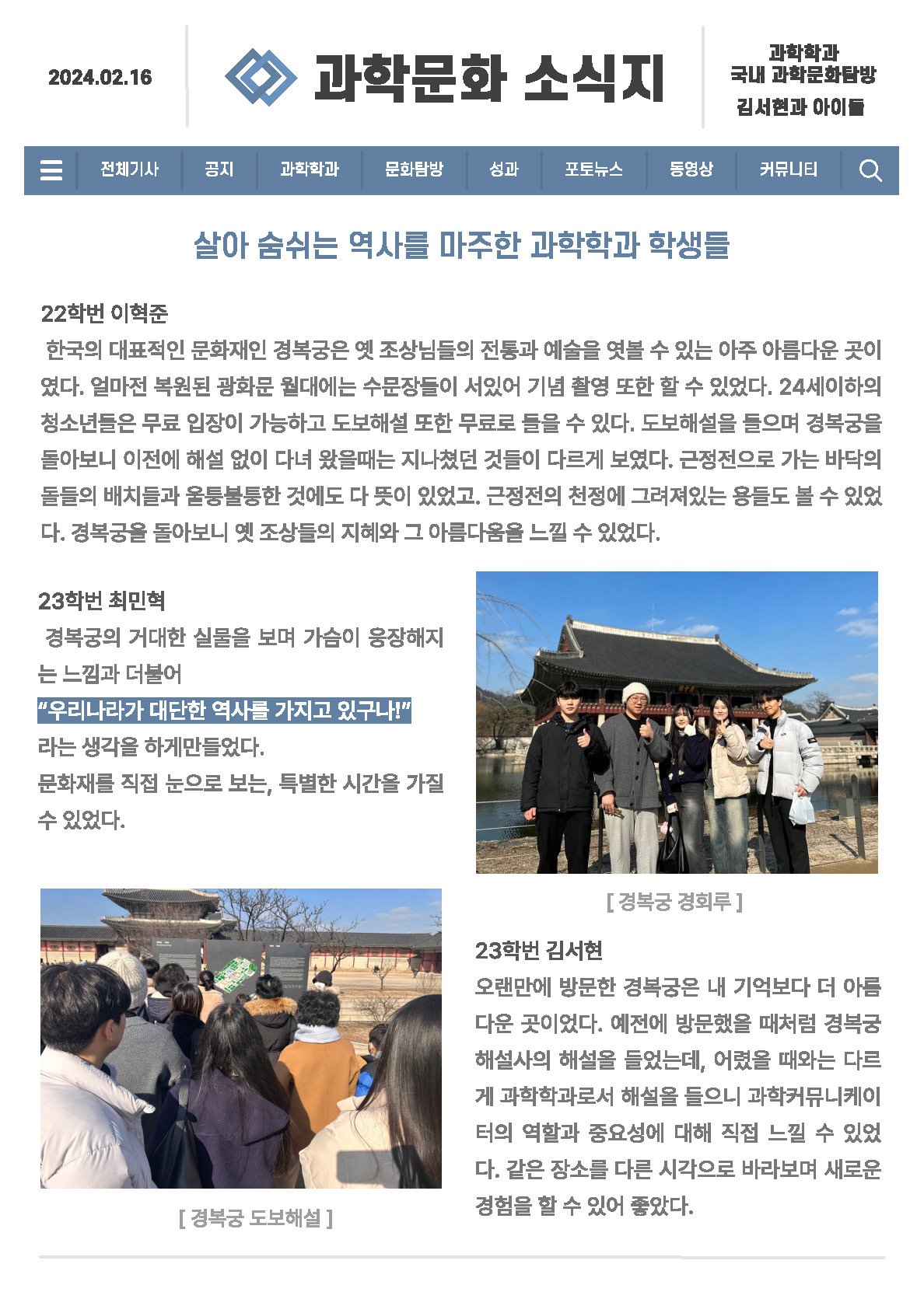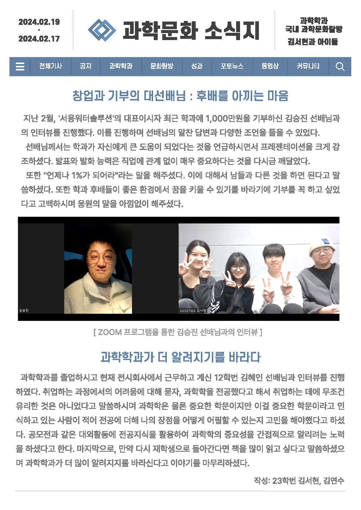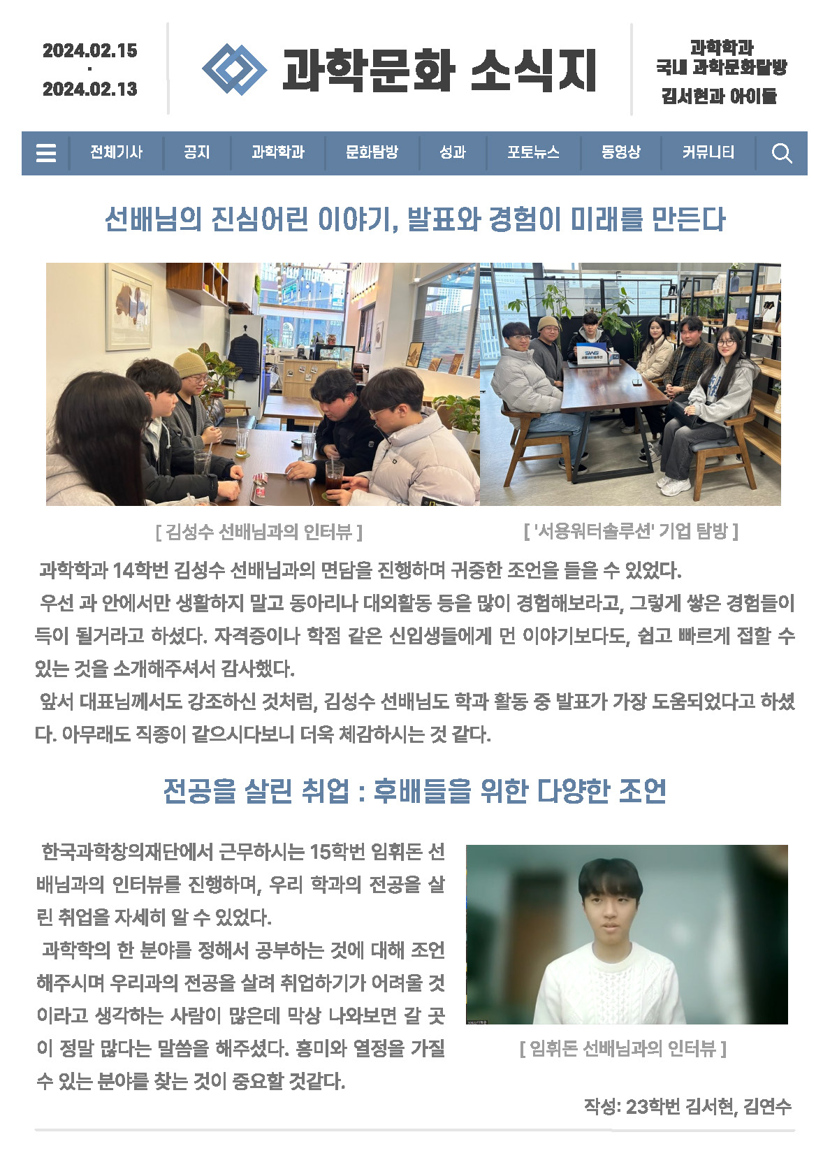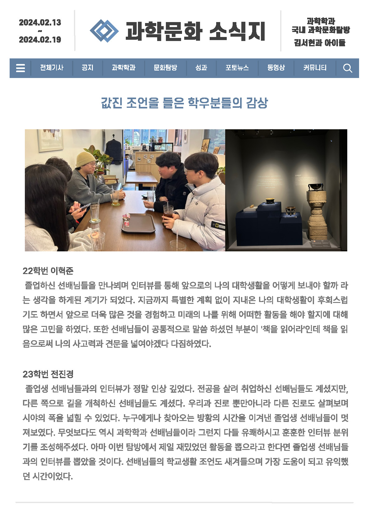 2024학년도 국내 탐방 및 졸업동문 인터뷰